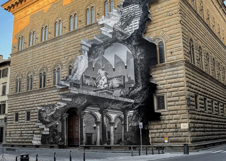 As half of Italy heads back into lockdown, the French artist JR has unveiled a major installation on the façade of the Palazzo Strozzi in Florence that stresses the importance of maintaining access to culture during the public health crisis.