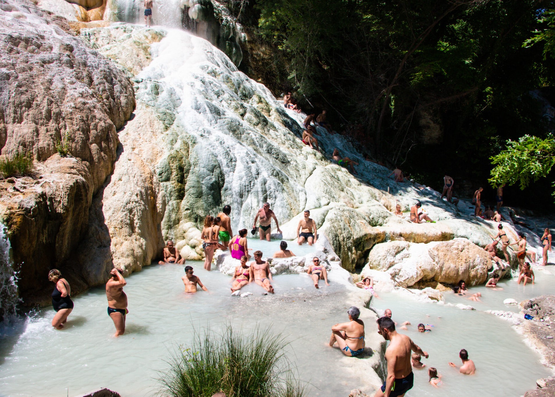 Unlike Bagni San Filippo’s more famous cousin, the thermal pools of Saturnia, these mineral rich waters are practically hidden; one doesn’t just stumble upon them but must seek out the secretive path through hazelnut woods leading to the pools. Fortunately, the namesake town of Bagni San Filippo is found on maps, and once there, the rest isn’t too hard to navigate.
