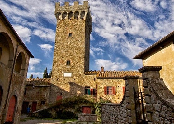 Gargonza is a typical example of a fortified Tuscan agricultural hamlet. It originated in the Middle Ages, at the time of the battles between the Guelphs and the Ghibellines, due to its strategic position between the Val di Chiana and the Siena territory. Legend has it that Dante Dante Alighieri spent the first days of his exile there in 1303.  In the 1500s, it had become a community devoted to the care of woods and the production of wool.