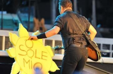 E soprattutto c'è stato un ricongiungimento speciale. C'è stato il ritorno del rocker americano alla sua terra d'origine. "È bello essere al Sud Italia - dice il boss in perfetto italiano - io sono del Sud Italia, è bello essere a casa". L'uomo nato per correre saluta il pubblico partenopeo sulle note di 'O sole mio' e poi attacca uno dietro l'altro i suoi successi. Corre, salta, grida, infiamma la folla. Si tuffa tra la gente, gioca con i fan. Un animale da palcoscenico degnamente accompagnato dal suo fedele branco, la E-street Band al gran completo.