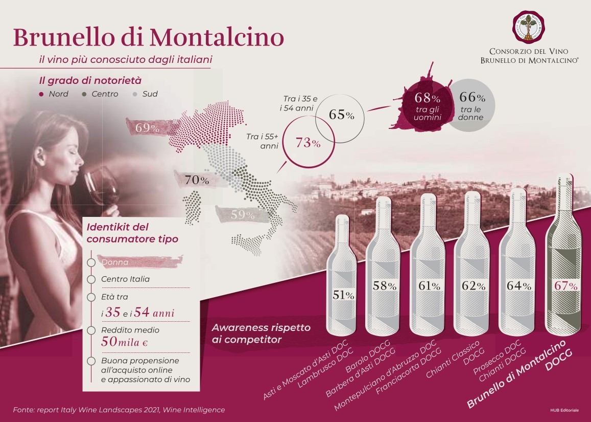 It is one of the “smallest” wine productions in Italy, since it represents a drop, 0.2% of the total, but at the same time, one of the most admired wines in the world, it is also one of the best known by Italian consumers, with a popularity of 67% and ahead of battleships such as Prosecco, Chianti and Chianti Classico and Montepulciano d’Abruzzo. This emerges from the survey by the British agency Wine Intelligence, for “Benvenuto Brunello” 2021, edition no. 30 of the preview, staged, even today, in Montalcino (until November 29th).