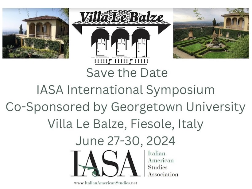 Call for Papers: Italian Diaspora and the Representation(s) of Italian Americans. Date: June 27-30, 2024. Where: Georgetown University Villa Le Balze, Fiesole (Firenze), Italy. Submission Deadline: Sunday, March 17, 2024.