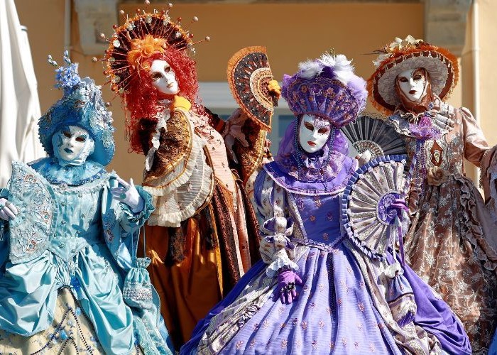 The disguise, typical of Carnival in Italy, dates back to the Palaeolithic period, when sorcerers during magic rites adorned their bodies with feathers and rattles and hid their faces with frightening-looking masks to drive away evil spirits.