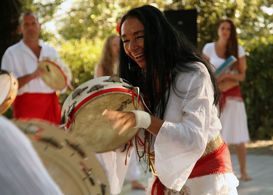 The year was 1983, at La Festa di San Rocco, the Feast of Saint Rocco, in the Apulia region of southern Italy. Alessandra Belloni grasped her moon-shaped tamburello and stepped boldly into the ronda, a circle of thirty male drummers.