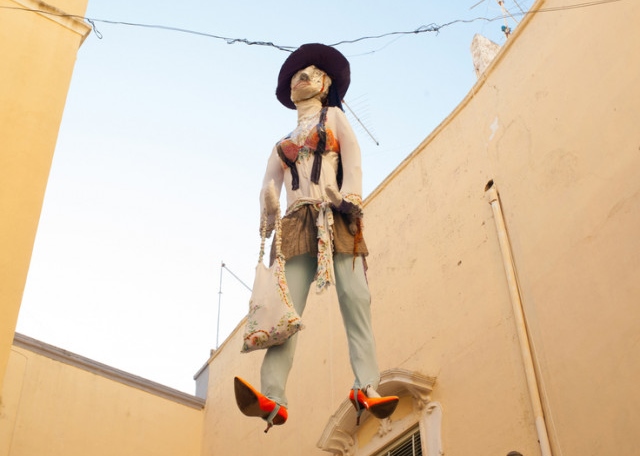 Puppet Burtning: On the southern heel of Italy, around Gallipoli, puppets are hung from balconies all over town at the start of Lent, representing a witch – known as La Caremma – traditionally dressed all in black. She might be holding a spindle or an orange as a symbol of abstinence and frugality during the 40-day period, and is usually decorated with seven feathers, one for each Sunday of Lent. On Easter Sunday, the puppets are burnt in a symbolic gesture to drive out bad spirits and welcome back Christ.