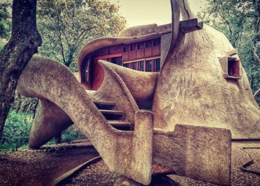 Architect Vittorio Giorgini built the house in 1962 for Salvatore Saldarini, an entrepreneur in Como. His idea was to give life to a zoomorphic building that could fit in with the surrounding natural environment with its continuous lines. The structure was based on layers of galvanized welded mesh covered in cement. While questioned at first, the project’s stability was confirmed by testing it with twice the normal load.