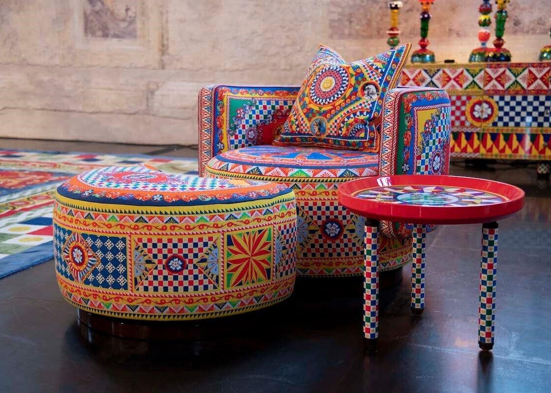 Pivoting their attention to decor, the duo produced what must be some of the boldest and most cheerful home objects ever created. Unveiled at their Alta Moda couture show in Venice, Dolce & Gabbana Casa splashes the design house’s four signature motifs across sofas, chairs, tables, cabinetry, and more.