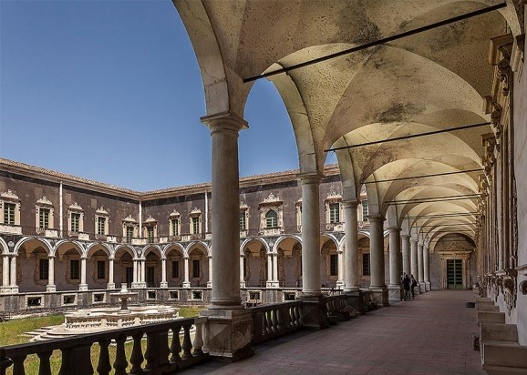 Their monastery, known as Monastero di San Nicolò l’Arena, resembled a sumptuous noble residence rather than a place where to retreat and pray to God. It was also very big, almost a city within a city, located in a panoramic position with views of the sea and the Etna volcano on what was once the acropolis of the Greek colony of Katane.
