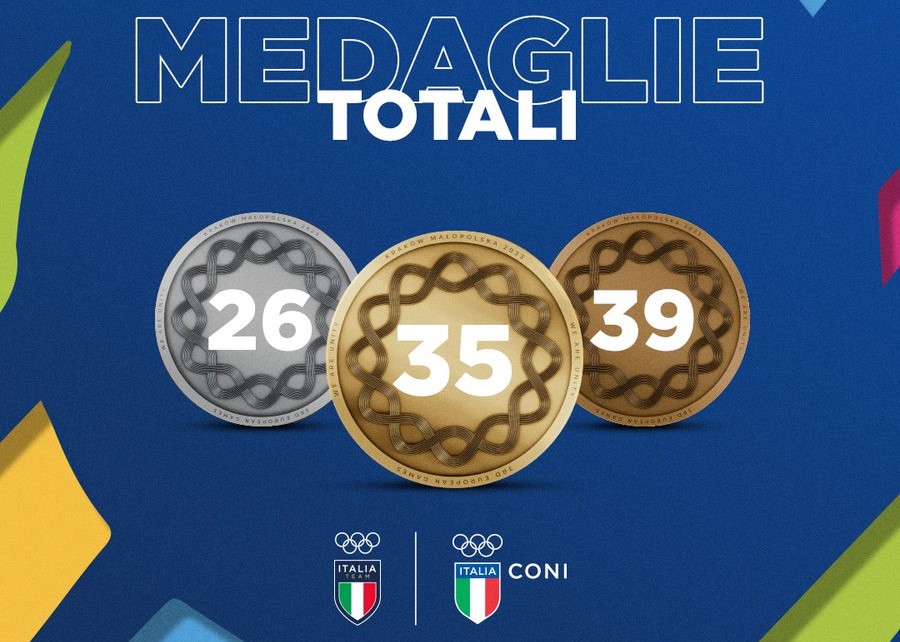 The medals collected by the Italian men and women athletes at the 2023 European Games in Poland total 100. There are 35 golds, 26 silvers, and 39 bronzes for a record-breaking edition in which the Azzurri dominated the medal table while also taking home victory in the points standings.