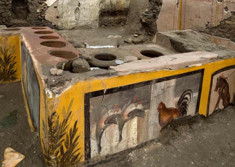 Researchers said on Saturday they had discovered a frescoed thermopolium or fast-food counter in an exceptional state of preservation in Pompeii. The ornate snack bar, decorated with polychrome patterns and frozen by volcanic ash, was partially exhumed last year but archaeologists extended work on the site to reveal it in its full glory.