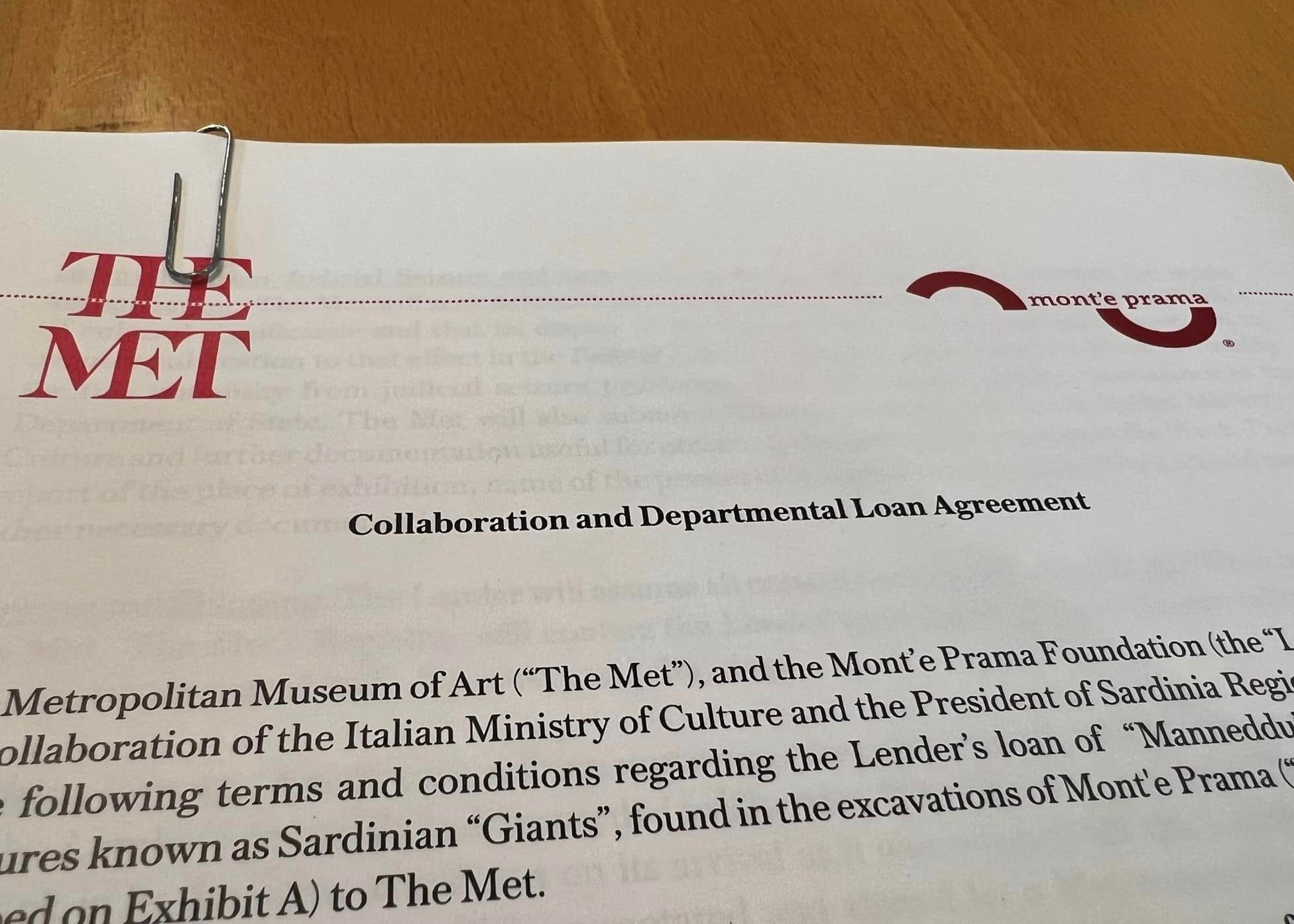 Fondazione Mont'e Prama and the Metropolitan Museum of New York have signed an agreement for an exhibition on the ancient history of Sardinia, which will open in May 2023 and remain open until November of the same year.