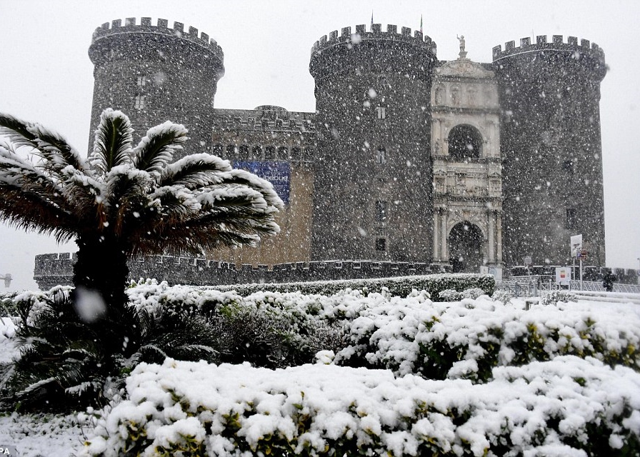 Naples has seen its heaviest snow in half a century as a blast of Siberian weather continued to send temperatures plunging across Europe. The snowfall led to the closure of the city's airport and transport in the city was severely disrupted while schools were forced to close.