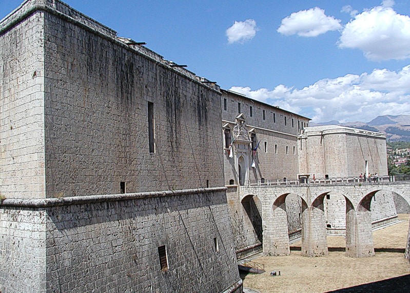 The majestic Forte Spagnolo, also known as Castello Cinquecentesco, is a castle in L’Aquila, Abruzzo. It is a classic example of military architecture but was never used in battle, and became instead the residence of the Spanish governor in the 17th century, later housing French soldiers in the 1800s and German troops during the Second World War occupation.