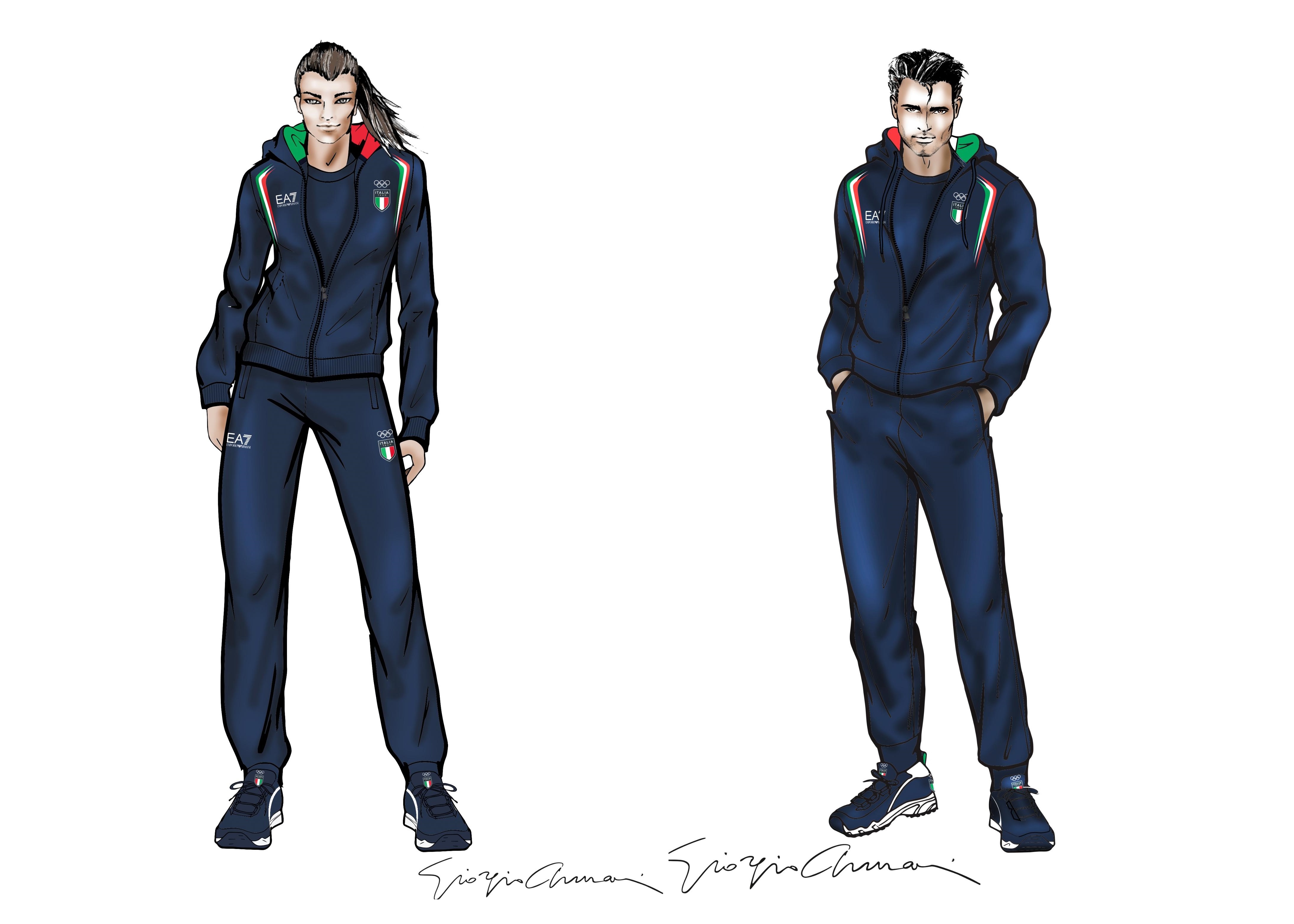The athletes will wear EA7 sportswear that will be delivered to them in a modular wardrobe kit, which will include a technical-fabric ski tracksuit and mantle, a long down coat, a polo fleece shirt, a blue and white t-shirt with tricolor pattern, a sweater, cotton trousers, and a cotton layering set. The look will be accessorized with gloves, a hat, a scarf, waterproof shoes with anti-slip grip, a luggage trolley, a gym bag, a boot backpack and a messenger bag.