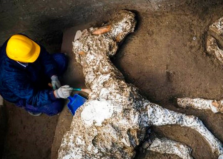 Archaeologists have unearthed the petrified remains of a harnessed horse and saddle in the stable of an ancient villa in a Pompeii suburb. Pompeii archaeological park head Massimo Osanna told Italian news agency ANSA that the villa belonged to a high-ranking military officer, perhaps a general, during ancient Roman times.