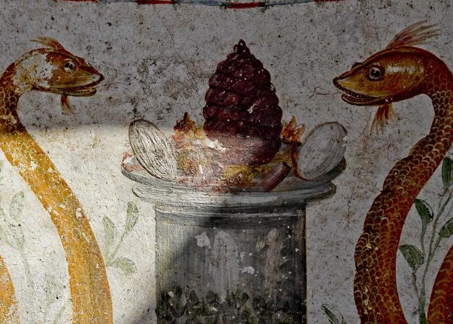 Its walls are painted with snakes, a peacock, golden beasts fighting against a black wild boar, skies decorated with birds, a well, a colored tub and the portrait of a figure that is partly man and partly a dog. The director of the Pompeii archaeological park, Massimo Osanna, told ANSA that it is "a marvelous, enigmatic room", a treasure "to be studied in-depth".