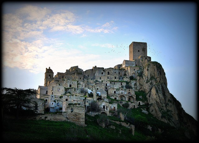 Fondato nell’VIII secolo a.C., il villaggio di Craco in provincia di Matera, è completamente abbandonato dagli anni ’80, quando un terremoto spinse i pochi abitanti rimasti ad andarsene. Situata sulla sommità di una collina a 400 metri di altezza, in posizione strategica, la cittadina visse il suo periodo d’oro nel medioevo, quando venne costruito il castello che sovrasta tutta la zona. Sebbene abbandonato, Craco ogni anno ospita numerose manifestazioni religiose.