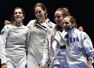 L'Italia ha vinto la medaglia d'oro nella prova a squadre di fioretto femminile agli Europei di Montreux. Le azzurre hanno superato in finale la Russia per 45-44. Dopo un avvio in salita, con un passivo anche di sette stoccate, Elisa Di Francisca iniziava una lenta rimonta, portata avanti poi da Martina Batini ed Arianna Errigo. Quest'ultima saliva per l'ultimo parziale con il punteggio che vedeva le azzurre in vantaggio per 37-33.