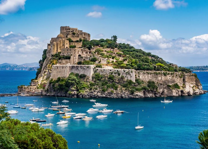 A quietly idyllic island in the Tyrrhenian Sea, Ischia offers a heartwarming dose of Italian beauty, spirit and hospitality, with a generous splash of nostalgia for the Italy of yesteryear. Here, five-star hotels and luxurious thermal springs are juxtaposed with scenes of Italian grandmothers hanging out laundry, religious street parades, and kids strapped on the back of adults zooming by on Vespas.