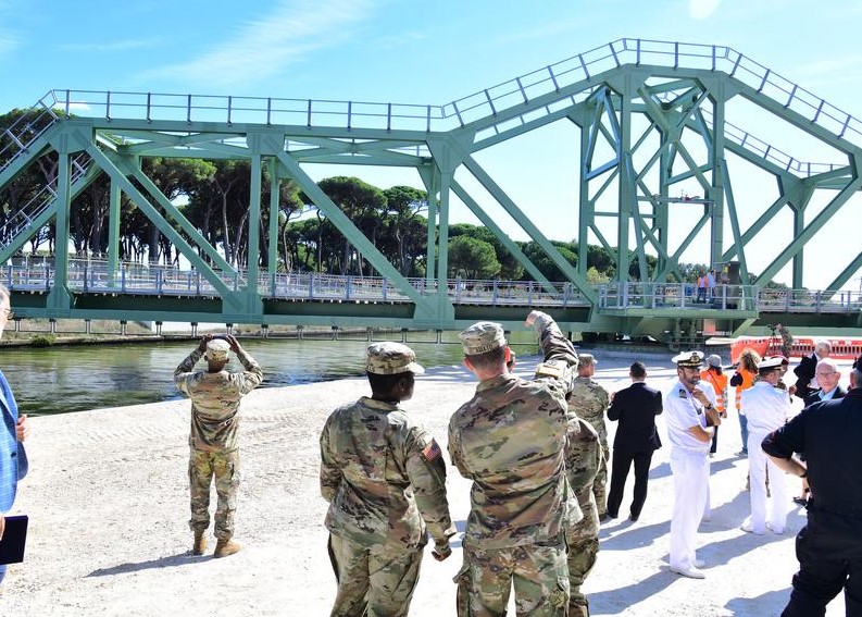A swing rail bridge over the Navicelli canal near the port of Livorno allows the U.S. military to better connect the Army’s Pisa Ammunition Storage Area at Camp Darby to European rail lines, said Col. Matthew Gomlak, commanding officer of U.S. Army Garrison Italy.