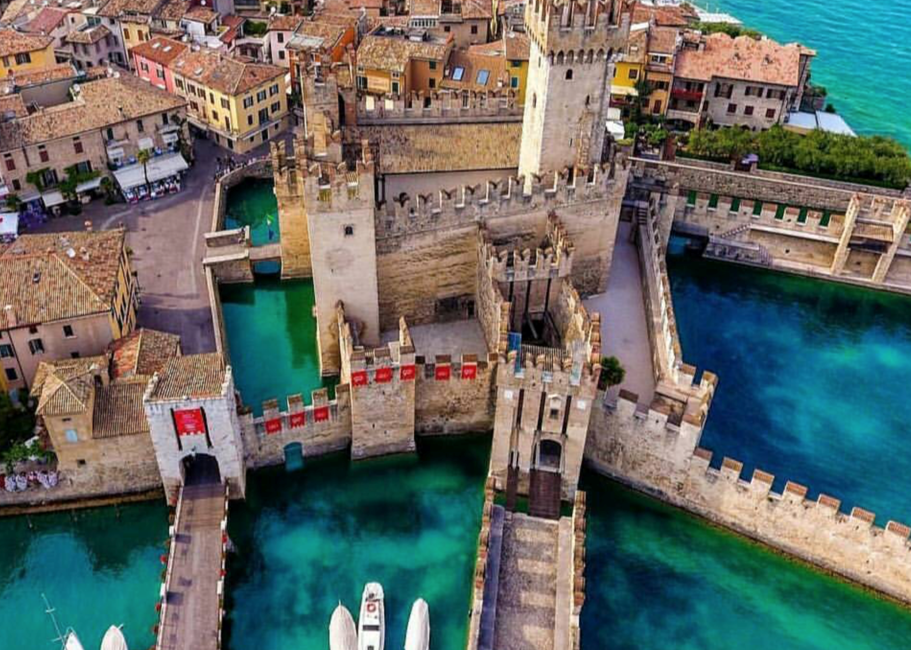 Castello Scaligero (Scaligero Castle), in the commune of Sirmione, sits on a thin peninsula jutting out into the southern end of Lake Garda. Essentially, the ramparts of the castle function as a small fortified harbor for what was the Scaligera fleet.