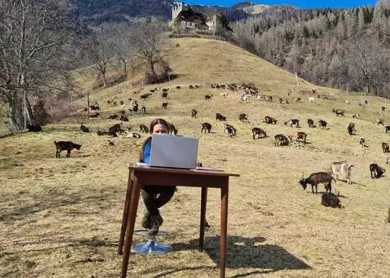 Italian schoolgirl takes online lessons in mountains surrounded by goats
