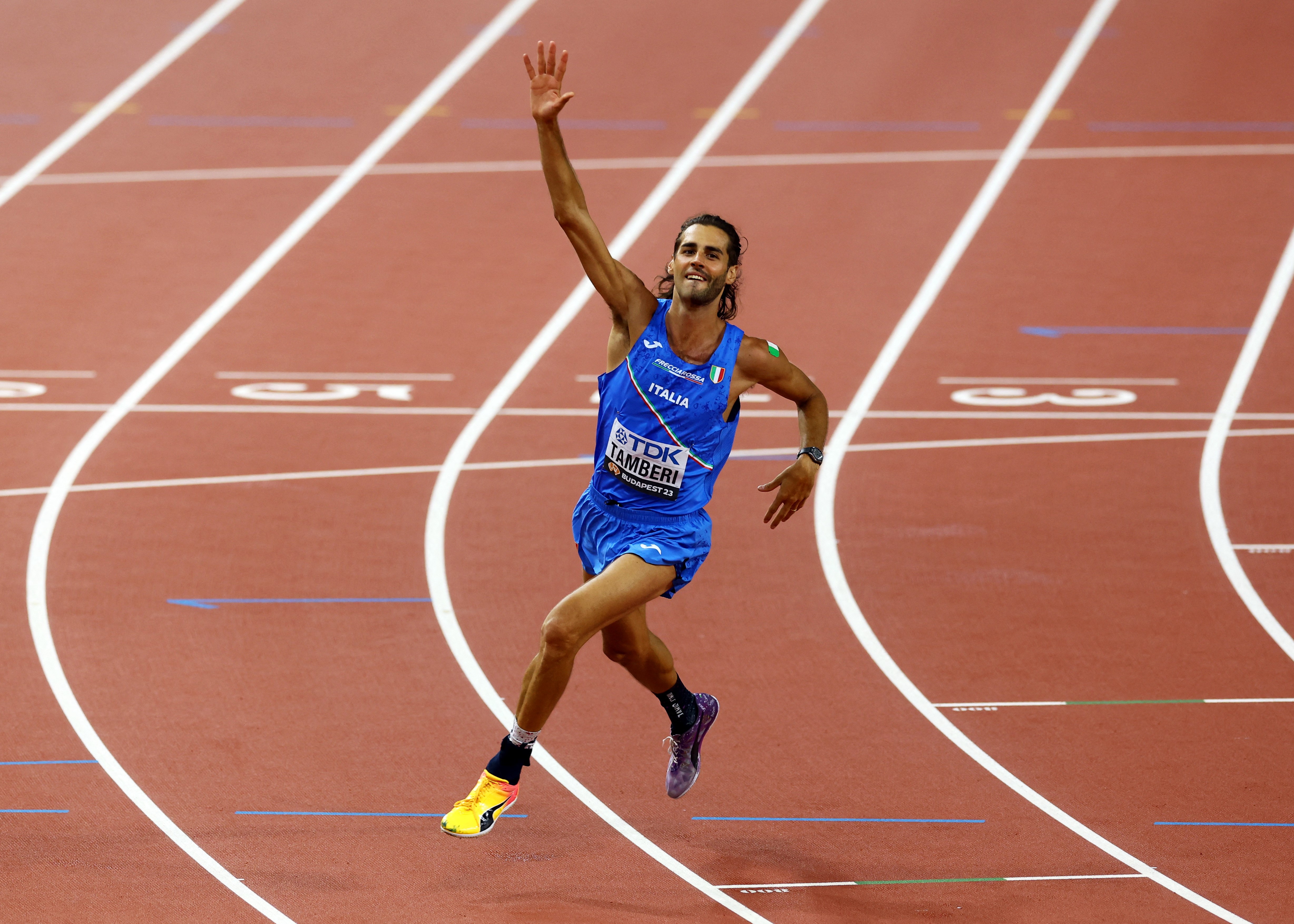 Italy's Olympic champion and showman Gianmarco Tamberi captured the world high jump title on Tuesday, in a dramatic finish against young American JuVaughn Harrison. Tamberi, who famously shared the Olympic title with three-time world champion Mutaz Barshim of Qatar, cleared a world-leading 2.36 metres for gold. He missed at one attempt at 2.40 and then called it a night, his victory secured.