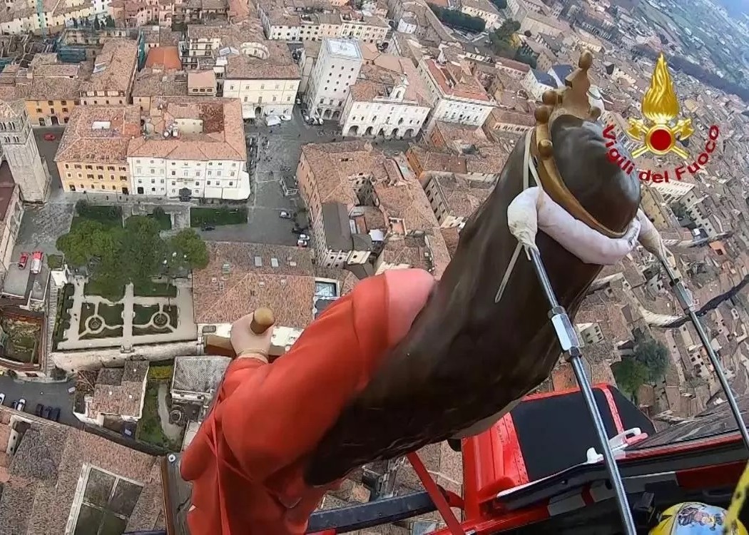 Firefighters strapped a statue of the saint to the side of the fire brigade helicopter and took to the skies above the town so residents below could honour their saint. The unusual spectacle occurred on 4 December, the saint's feast day, a popular occasion that usually draws hundreds of visitors from near and far.