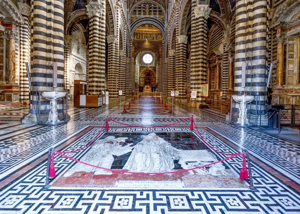 Visitors, who will be obliged to follow precautions to contain the spread of covid-19, will be able to admire the inlaid floor whose 56 panels were created between the 14th and 16th centuries. The interlocking "marble carpet" floor was described by Giorgio Vasari as "the most beautiful, largest and most magnificent floor that ever was made".