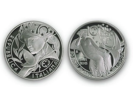 Italy has won the 2017 Coin of the Year Award. It will be given the trophy Feb. 4 at the World Money Fair in Berlin. An international panel of judges selected the country’s silver 10 euro issued to mark 70 Years of Peace in Europe. This coin and all coins in the competition are dated 2015.