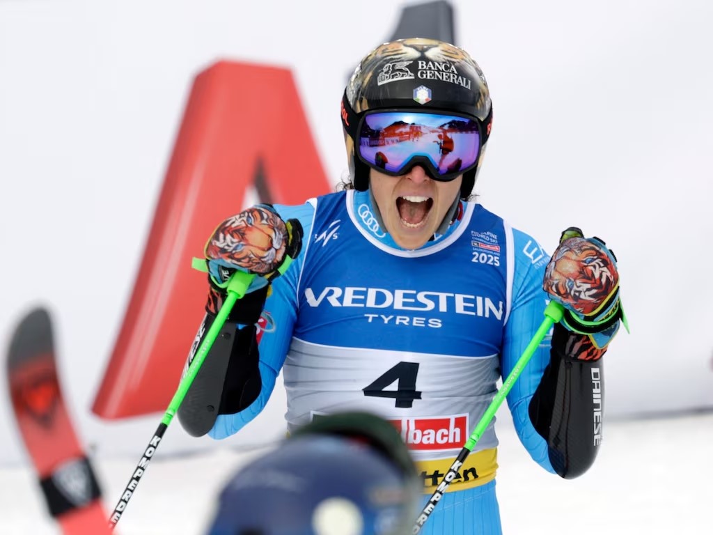 America's Paula Moltzan battled to claim the bronze medal, overcoming Norway's Thea Louise Stjernesund by one hundredth of a second. Brignone had finished second behind Mikaela Shiffrin in this event in 2023, and took the silver medal at the 2022 Olympics. The Italian also has a giant slalom silver medal from her first world championships in 2011.