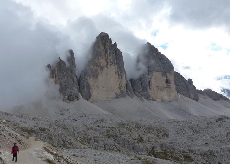 My first encounter with Italy's famous "three peaks" - the Tre Cime di Lavaredo - was in a traffic circle. In the picturesque town of Dobbiaco/Toblach, three small painted sculptures in the center of the roundabout marked the gateway to one of the most iconic views in the Italian Alps.