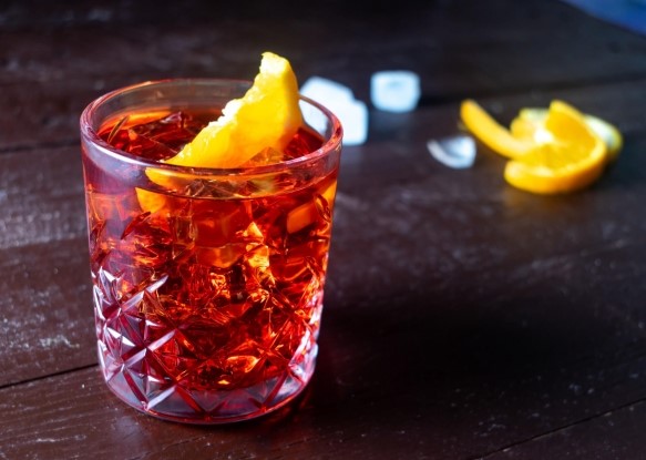 Here’s how you make it: 1 part (1oz, 3cl) Campari; 1 part (1oz, 3cl) Gin; 1 part (1oz, 3cl) Red Vermouth; 1 slice of orange. 1) Pour all ingredients directly into an old-fashioned glass filled with ice; 2) Stir gently; 3) Garnish with a slice of orange. The quality of the gin is important to the final result, so go for a high-end one. The sweet vermouth offsets some of the bitterness of the Campari, a bitter aperitif obtained from the infusion of herbs and fruit in alcohol and water, often used in cocktails.