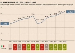 Grazie alla spinta dell'auto l'Italia torna nella top ten dei maggiori fornitori degli Stati Uniti. Un a decima piazza persa nel lontano 2003 e da allora mai più ritrovata , con un progressivo scivolamento del made in Italy che portava il nostro paese al 15esimo posto nel biennio 2010-2011. Da allora una lenta ma costante risalita, coronata nel primo semestre dell'anno con risultati mediamente superiori rispetto alla maggior parte dei nostri competitor.