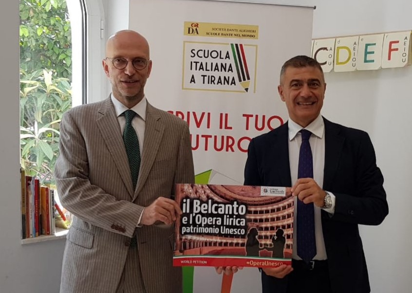 A Tirana ci sarà lo stesso Alfonso Pecoraro Scanio per presentare la candidatura del "Belcanto e Opera Lirica Italiana" a Patrimonio Unesco. La petizione, il cui il primo firmatario è stato il segretario generale della Dante, Alessandro Masi, è rivolta alla Commissione Nazionale Italiana per l’UNESCO, al MiBACT, al MIUR e al MAECI.