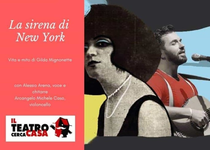 Domenica 14 ottobre ore 18, Il Teatro cerca Casa arriva alla Fabbrica del divertimento di Ercolano (Via Madonnelle 29), con “La Sirena di New York – Vita e mito di Gilda Mignonette”, spettacolo tratto dal romanzo “La notte non vuole venire” – uscito il 4 ottobre 2018 per Fandango Libri – del “cantascrittore” originario del Rione Santà, Alessio Arena. In scena, oltre allo stesso Arena (voce e chitarra), il violoncellista Arcangelo Michele Caso, anche autore delle elaborazioni musicali.