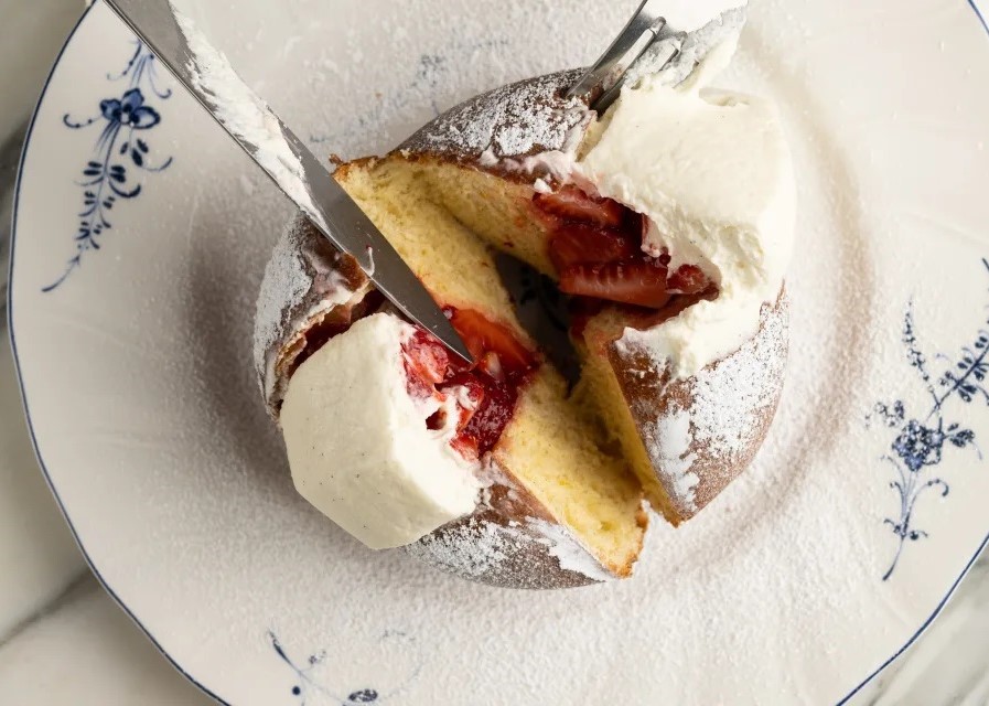 Before Shannon Swindle even got the job as pastry chef at Mother Wolf in Los Angeles, he knew maritozzi were destined for the dessert menu. The restaurant’s bouncy, football-shaped Italian brioche buns are filled with an absurd amount of cloud-like whipped cream and hide a surprise sweet-tart pocket of macerated Harry’s Berries. “It’s a bit more dessert-y than the classic” bun, which is typically eaten for breakfast in Italy, Swindle says. But it’s still “iconically Roman.”