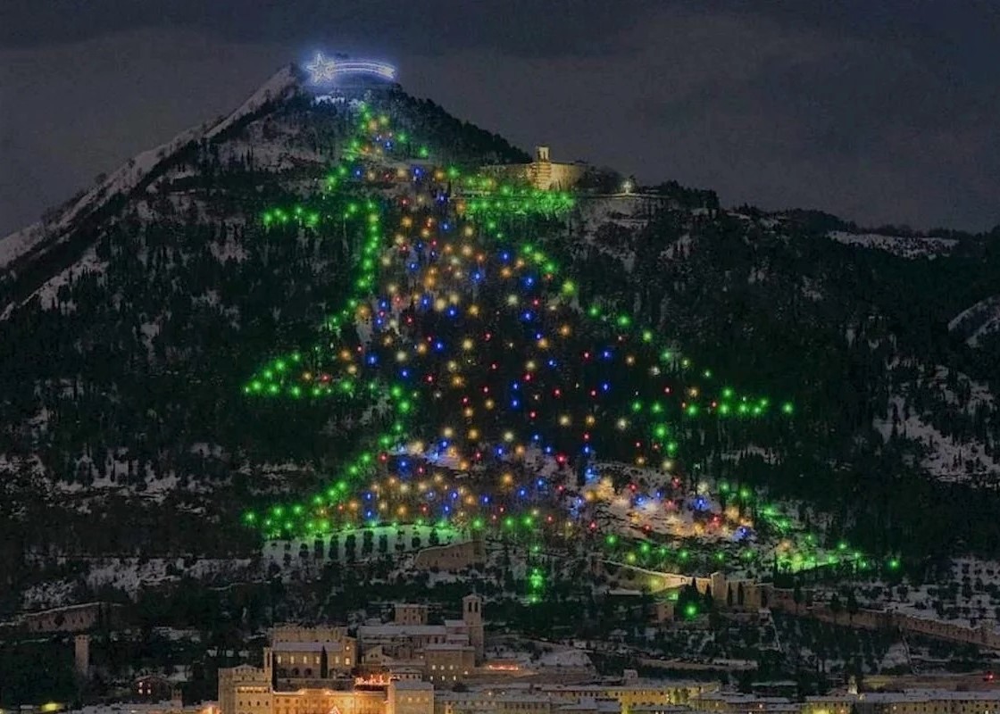 What do two popes, the actor Terence Hill, and Doctors without Borders have in common? Each of them has had the honor of lighting the world’s largest Christmas tree, proudly displayed since 1981 in the small Umbrian town of Gubbio in Italy.
