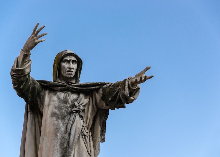 This event, known to history as the Bonfire of the Vanities, was carried out at the urging of the monk christened Girolamo Savonarola, one of the most famous figures in the city’s history. Savonarola, or Fra Girolamo, had made a long, strange journey since his birth in 1452. Born in Ferrara, to a reasonably wealthy, humanist family, it had looked like Savonarola was going to follow his father into medicine.
