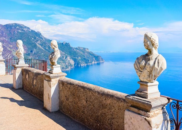 Standing on a rocky promontory that once housed the ruins of a Roman villa, the historic Villa Cimbrone boasts one of the most spectacular views of the entire Amalfi Coast. Located in picturesque Ravello, the villa can be reached on foot from the center of town in a few minutes.