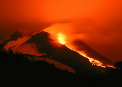 Scientists say it was among the most violent eruptions from the volcano in the past two decades. The intense eruption exploded from Etna's Voragine crater, and lofted ash 10,000 feet into the sky. The whole thing lasted less than an hour, according to Italy's national institute of volcanology. The lava fountain reached heights of close to a mile.