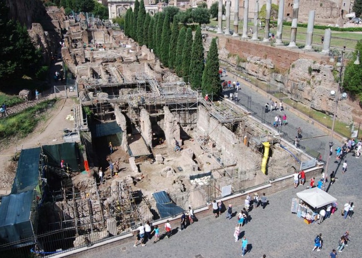 The oldest traces (le tracce più antiche) date back to simple huts built in the tenth to fourteenth centuries B.C. (A.C. for Avanti Cristo, before Christ, in Italian). Panella’s dig has centered on the swath of land between the Colosseum and the Arch of Constantine, the very heart of ancient Rome.