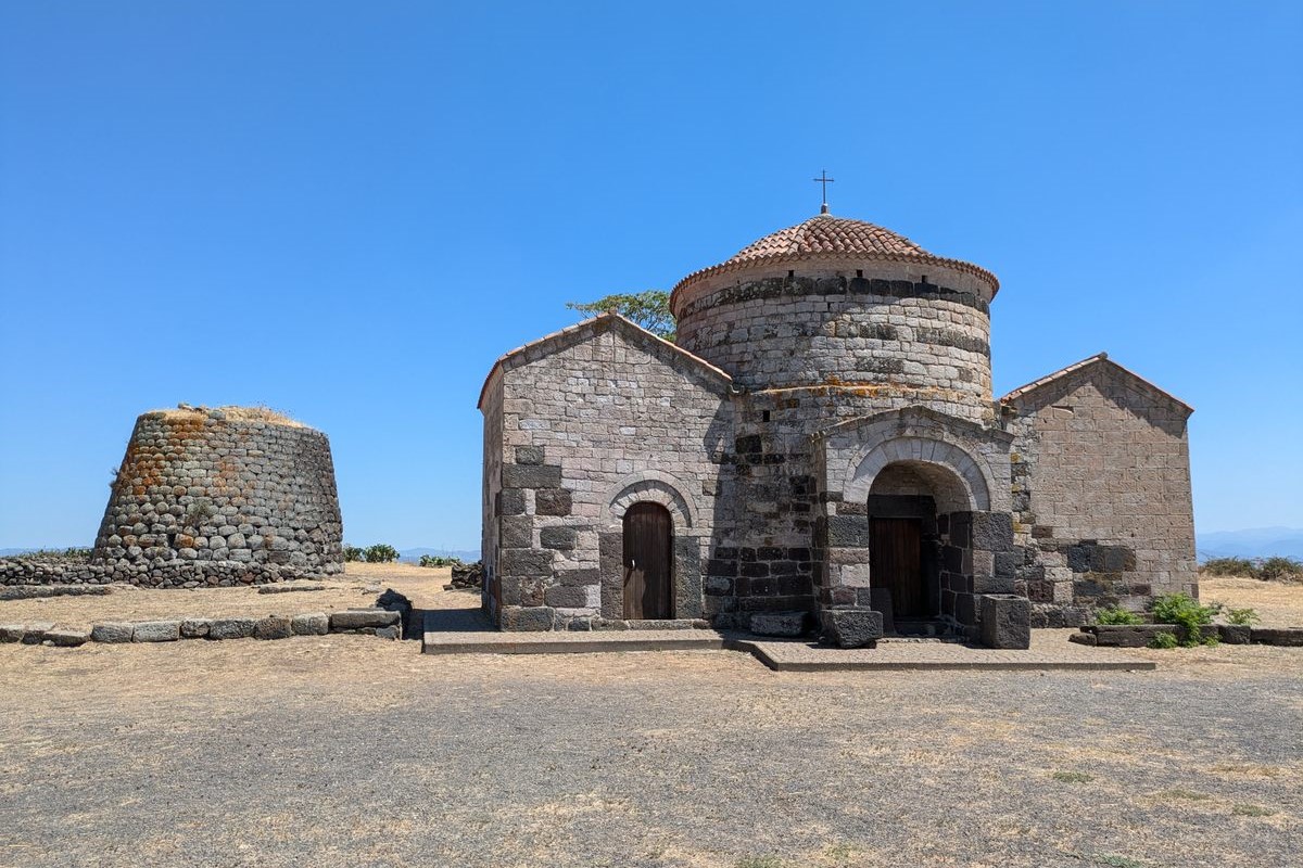 Amid the flat plains of Sardinia, Italy, stands a well-preserved nuraghe. Next to it, sits a small Romanesque-Byzantine church with mysterious origins. It’s not clear when exactly it was built or by whom. It is at least 1000 years old, and has served several purposes throughout its life.