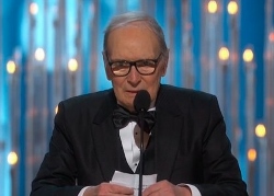 Morricone received a standing ovation from the audience, before giving his speech in Italian. "Thank you to the Academy for this prestigious honor," he said through an interpreter. Morricone gave special mention to fellow nominee John Williams, before thanking Tarantino for giving him the opportunity. Born in Rome, Morricone shot to prominence thanks to his scores for Clint Eastwood's run of 1960s Spaghetti Westerns (his theme from The Good, the Bad, and the Ugly remains one of the most recognizable in cinema history).