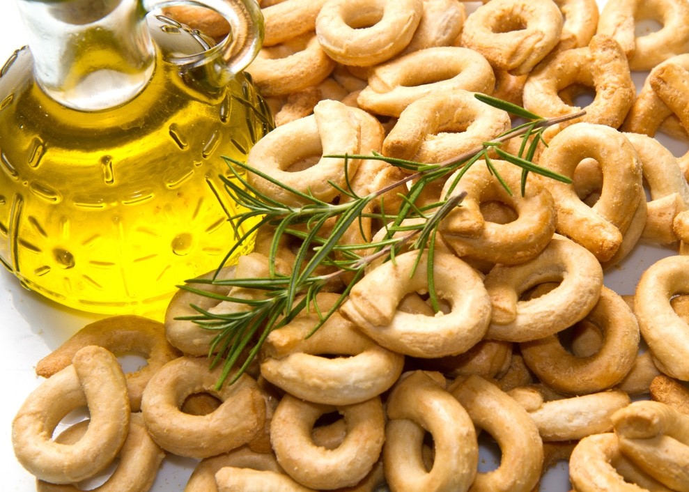 Crunchy, tasty, and somehow indulgent in their simplicity, taralli are small, round, and fragrant morsels of bread dough, enriched with olive oil and white wine. They can be also flavored with things like chili peppers or fennel seeds, as well as olives or onions. They are traditional of Puglia, the heel of the Italian boot, but today they are common across the country.
