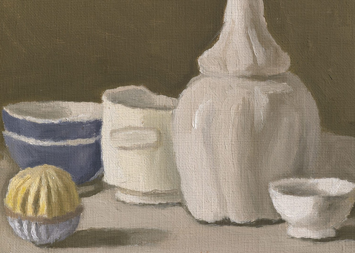 Quiet. If one had to find one word to sum up the paintings of the enigmatic artist, quiet would be on the shortlist. He painted pots and vases, bottles and boxes arranged in an apparent disarray, in browns, blacks and greys, muted yellows and off-whites. Unemphatic, Beguiling.