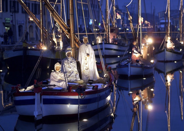 The Marineria di Cesenatico Nativity returns every year to Leonardo’s Port-Canal, speaking volumes about the small Adriatic town’s life with a poetic, traditional representation of Jesus’s birth. The storytelling is imbued with the lightness of the statues that make up this wonderful, floating show: a lightness that is both creative choice and technical requirement, because boats would not be able to hold too much weight over the water.