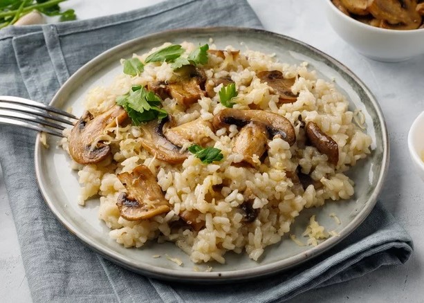 If you're craving a creamy, Italian comfort food dish, risotto is the way to go. The dish is made from short-grain rice, which is consistently stirred while broth or stock is gradually added. Common additions include mushrooms, onion, garlic, and Parmesan cheese. Risotto first appeared sometime in the 14th century, when rice was introduced to Italy and Spain (per Trip Trivia).