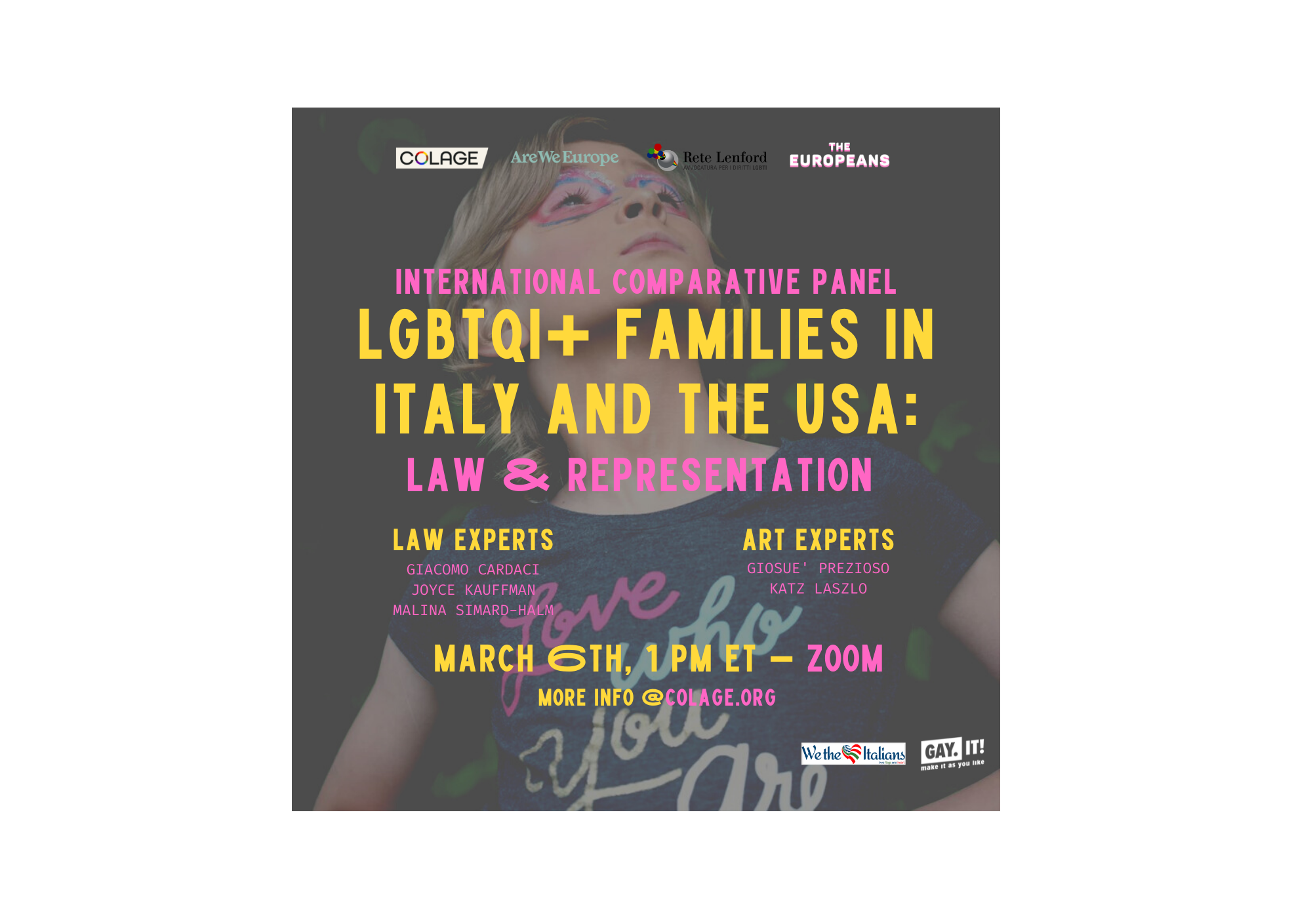 Now, in partnership with Colage - the only organization in the US dedicated to supporting people with one or more LGBTQI+ caregivers - as well as We the Italians, the Rete Lenford - Italy's network of LGBTQI+ lawyers - and Gay.it, Josh and Franco will become the trigger for a comparative international panel on Italian and American LGBTQI+ families.