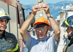 Amatrice parish priest Rev. Savino D'Amelio held up the recovered artifact. The 6.2-magnitude earthquake that struck small Italian towns in the center of the county in the middle of the night on Aug. 24 killed nearly 300. Many are still believed to be buried under the rubble, officials said.